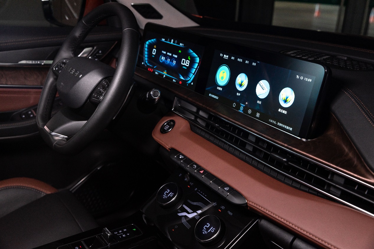 而在内饰上,EXEED星途LX采用了优雅的线条、精致的曲面与前瞻科技带来的便利功能相融合,希望打造令人耳目一新的高端定制化坐乘感受。环抱式的座舱设计,高级的材料装饰,以及双 12.3 吋悬浮横贯式液晶显示屏,配以触控式液晶空调控制面板,在前瞻科技体验与优质驾乘感受之间取得了完美的平衡。
