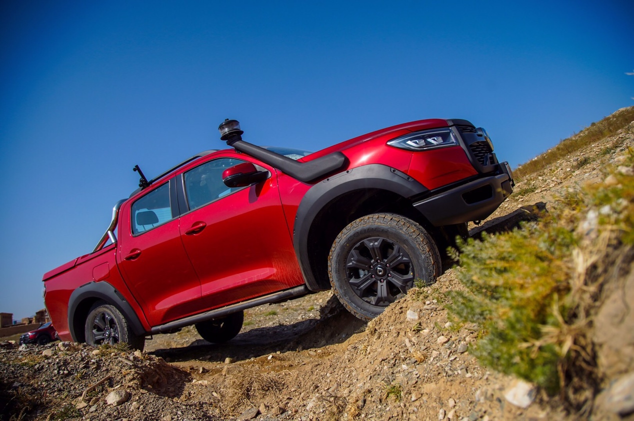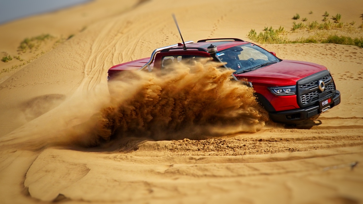 硬核的配置才是它的核心武器。长城炮越野皮卡标配前中后三把差速锁、坦克掉头、蠕行模式,使得整车脱困性能强悍。动力方面,本次发布的长城炮越野皮卡搭载2.0T汽油国六发动机,匹配来自采埃孚的8速手自一体变速器,并提供7种全地形驾驶模式,在蠕形模式、三把锁等功能的帮助下,让该车不仅能从容应对各种陡坡、恶劣的砂石路,在阿拉善的沙漠中“刷锅冲沙”更是游刃有余。值得一提的是,此次发布的长城炮越野皮卡采用了和乘用皮卡相同的多连杆后悬架,驾乘舒适性与传统皮卡相比大大提高。
