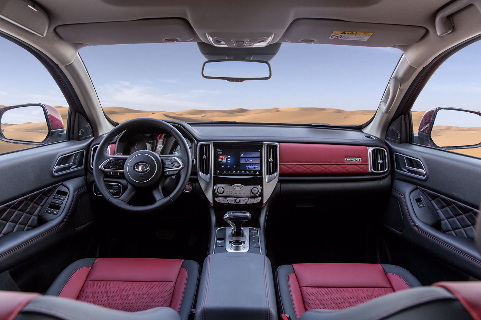 内饰方面,长城炮越野皮卡具有和乘用皮卡同样的舒适性配置,无钥匙进入+一键启动、多功能真皮方向盘配备换挡拨片、9英寸触摸屏、真皮座椅、自动空调、后排空调出风口、可开启天窗等乘用化配置一应俱全。