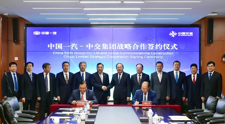 作为全球领先的集公路、港口、铁路、机场的现代综合交通基础设施、城市基础设施和海洋工程一体化综合服务商,中交集团将集中优势资源,为中国一汽提供最优质和全方位的服务。同时,中国一汽将发挥汽车制造领域专业优势,为中交集团工程项目用车、公务用车等方面提供一站式专业服务和整体物流解决方案。