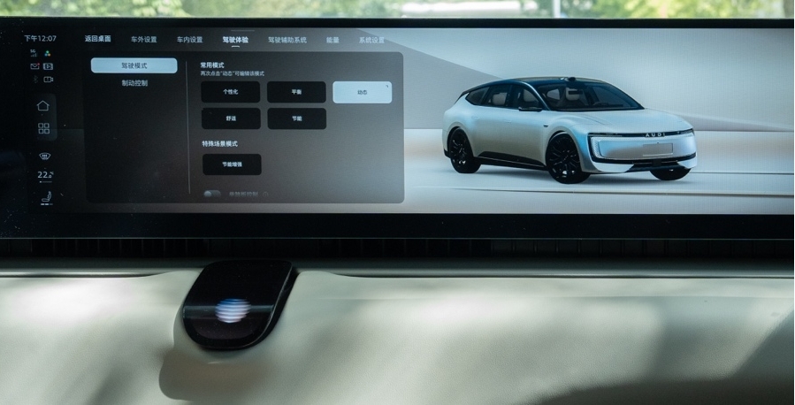 本次更新进一步优化了驾驶模式的视觉呈现。当切换至动态模式时,中控屏幕会同步呈现呼应运动氛围的视觉动效,搭配弹射起步专属动画,瞬间唤醒驾驶激情;当回归日常城市通勤时,选择舒适模式,界面则转为沉稳简约的动态效果,让驾驶状态一目了然,更贴合日常行车心境。此外,环形灯在自动模式下从仅在夜晚点亮升级为全天候点亮,无论是白天穿梭于都市楼宇间,还是夜晚行驶于昏暗道路上,车辆都能始终展现奥迪一以贯之的灯光美学,以极具辨识度的动态光影,伴随每一次出行。