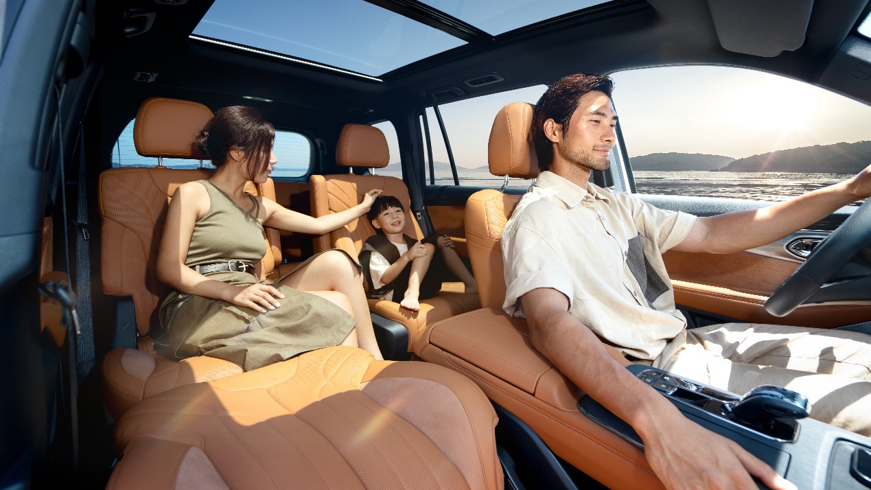 在中长途出行中,传祺ES9的宽奢大空间能给家人带去舒享的乘坐体验,让爱家的爷们儿一路安心。超5米1的车长,2920mm的超长轴距打造的超大车格,给全家人带来独属的舒适空间。其中,第二排座椅靠背支持8档调节,有131°可调范围,与前排副驾座组合,可打造二排“女皇躺椅”,不管是长途出行的中途休息还是短途出游孩子的短暂午睡,都能满足。不仅如此,传祺ES9第三排空间也是同级最优,头部与腿部空间更大,连大长腿都能放下,不能久坐的老人家也有足够的空间随时更换姿势,想怎么坐就怎么坐,可谓座座皆C位。
