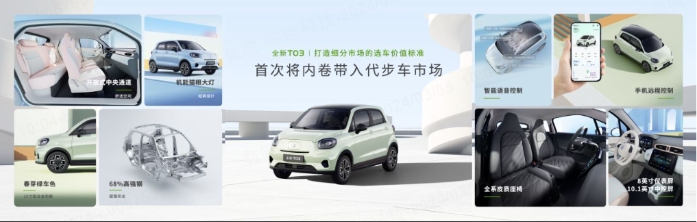 全新T03,为城市代步而来,在驾驶体验上同样出色,轻松应对通勤、短途游等各种场景。