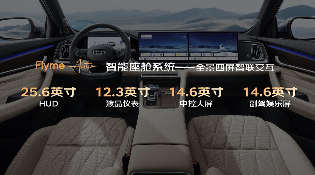 智能座舱方面,全新东方曜系列搭载用户量已破百万的Flyme Auto系统。基于7nm高通8155芯片的算力加持,25.6英寸全彩HUD抬头显示、双14.6英寸超窄边框高清大屏等支持四屏联动,彻底打破燃油车的硬件代差。基于Alive Design设计理念的极简交互,支持全面屏手势、一语即达等功能,让科技不再是冷冰冰的参数;以“车载常用APP、手车互联、浏览器与无界空间”构建的“车联万物”生态矩阵,全面兼容Flyme Link、Hicar、Carlink、Carplay(后续OTA)等主流互联协议,无论你是哪类用户,都能真正实现“想用就用,想玩就玩”。而全系标配深度融合Deepseek大模型的AI语音系统,更是一位懂车、懂路、更懂你的出行伙伴,用户仅需简单的“我有点热”或“去看看莫高窟”,全新东方曜系列都能即时响应,重新定义燃油智能座舱的天花板。
