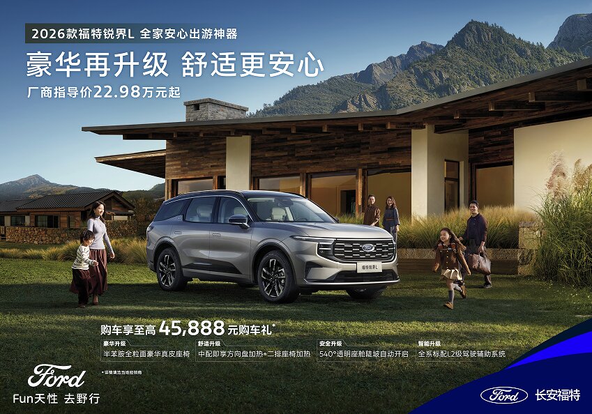 一直以来,福特锐界L不断倾听用户真实用车需求,致力于为中国家庭提供更舒适的驾乘体验。此次2026款福特锐界L上市焕新,带来了豪华、舒适、安全和智能四大升级,主力车型,加配不加价。