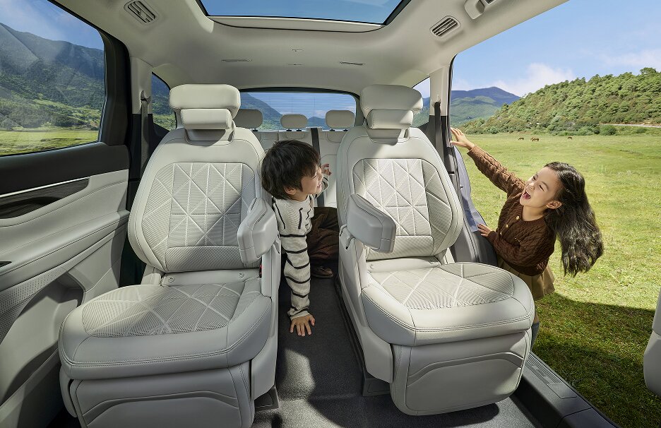内部空间上,福特锐界L是同级唯一具备2-2-3和2-3-2座椅布局可选的大7座SUV。2-2-3布局下,二排座椅可使用电动调节,更有三种座椅一键调节模式,其中“一键舒躺模式”可自动调节至“座椅向后41度、腿托向上50度”的近零重力模式,带来媲美头等舱的乘坐体验。二排座椅还有同级少有的加热、通风功能,很好地照顾到了老人、孩子的出行体验。2排通道宽至200mm,比一些MPV还宽,成年人可以轻松走进第三排。