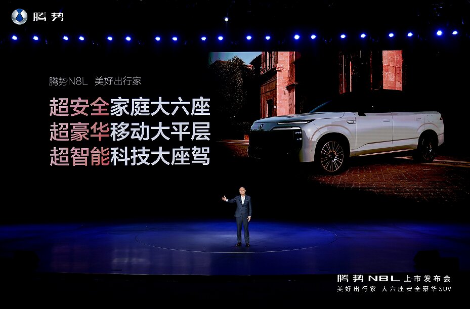 腾势总经理李慧用三句话总结N8L,就是:超安全家庭大六座、超豪华移动大平层、超智能科技大座驾,以硬核技术实力重塑家庭大六座豪华SUV新标准,与每个热爱生活的家庭一起奔赴美好。