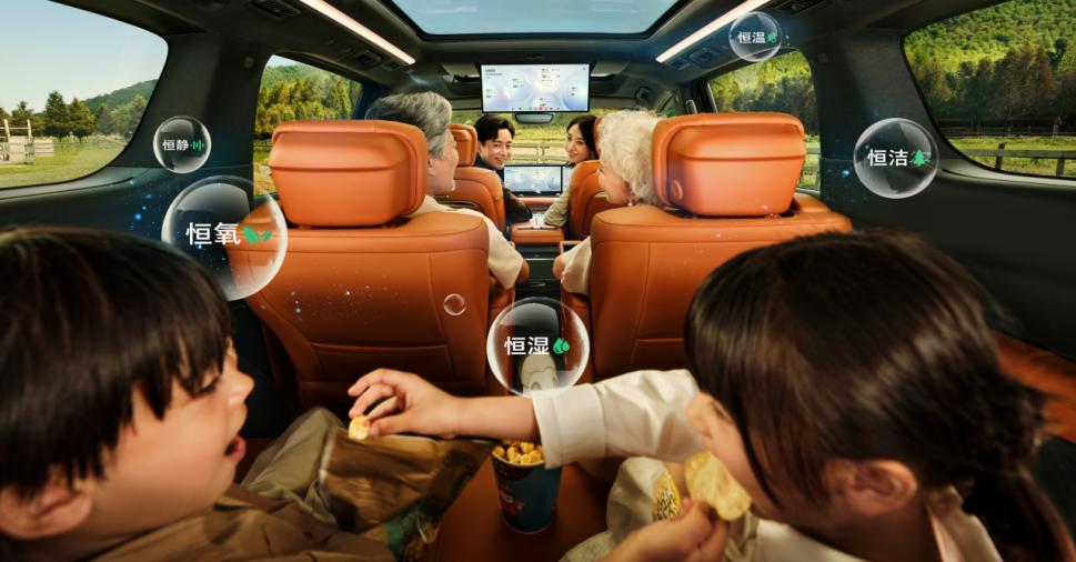 针对高净值家庭对健康出行的更高追求,至境世家行业首创“五恒”大健康座舱,采用先进健康科技与硬件配备,并联合全球顶尖认证机构,打造恒温、恒湿、恒氧、恒洁、恒静的健康舒适座舱环境。世家的座舱引入同级独有的松下nanoe?X净化技术,行业首创南德TÜV护眼认证1.1米超长智慧顶灯,前排三屏贯通式娱乐屏和后舱智慧屏均通过莱茵TÜV低蓝光护眼认证;座椅皮革通过全球最高标准OEKO-TEX婴儿级认证,即使被婴幼儿无意接触甚至啃咬也绝对安全;座舱的电磁辐射值比手机更低,无论是有娃家庭还是备孕夫妇,或是佩戴心脏起搏器等敏感人群都能放心驾乘。通过“五恒”大健康座舱,至境世家引领新能源MPV实现从“冰箱彩电大沙发”到“家庭出行大健康”的价值跨越。