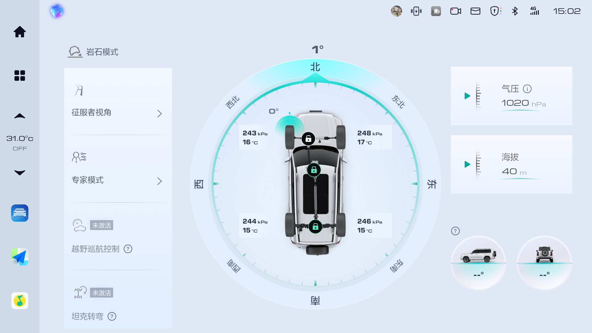 131L双油箱,1400公里无补给自由:采用双油箱设计,总容积达131L,搭配双油泵独立工作系统,满油状态下可实现1400公里超长续航,轻松覆盖戈壁、荒漠等无补给路段,让 “远方直达” 成为现实。这一配置打破了豪华品牌海外特供的传统,成为国内消费者可享的原厂标配,尽显产品诚意。