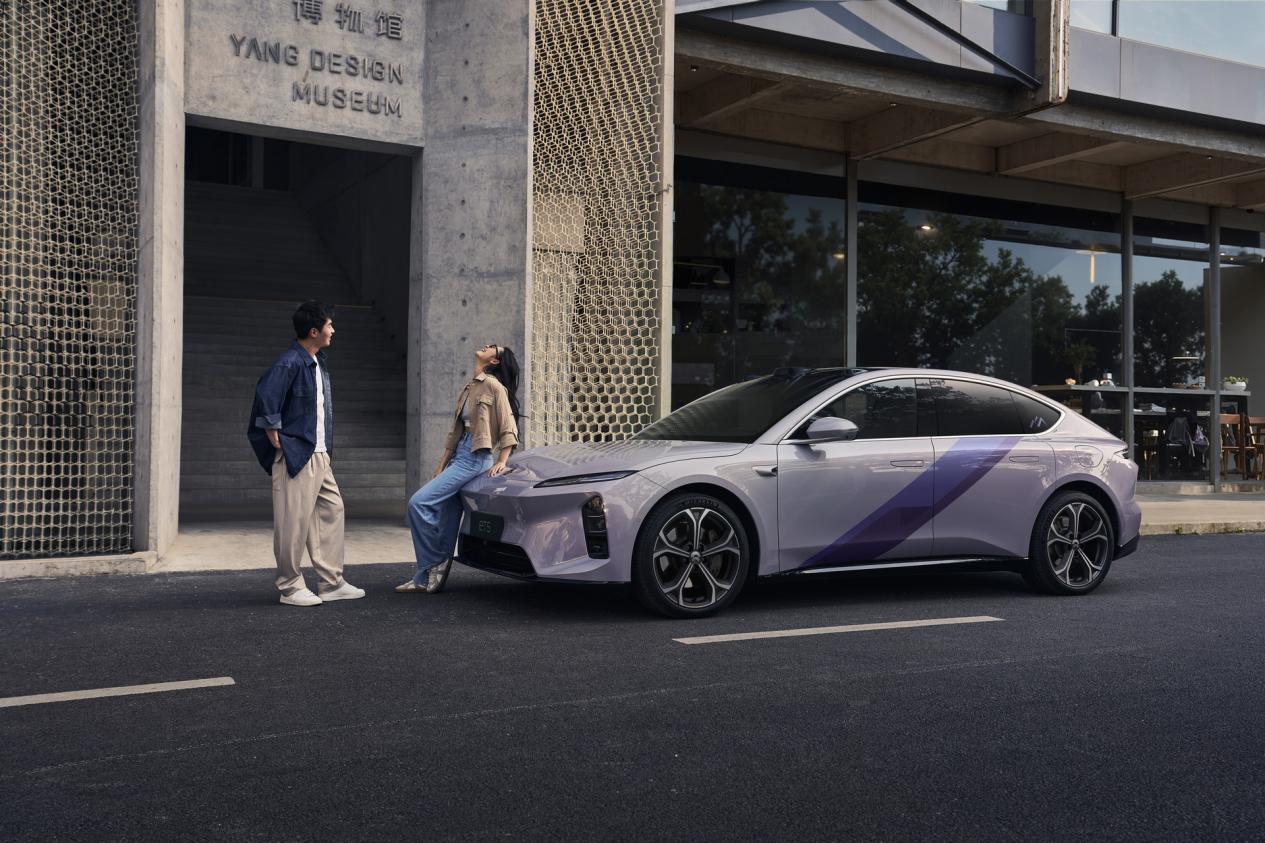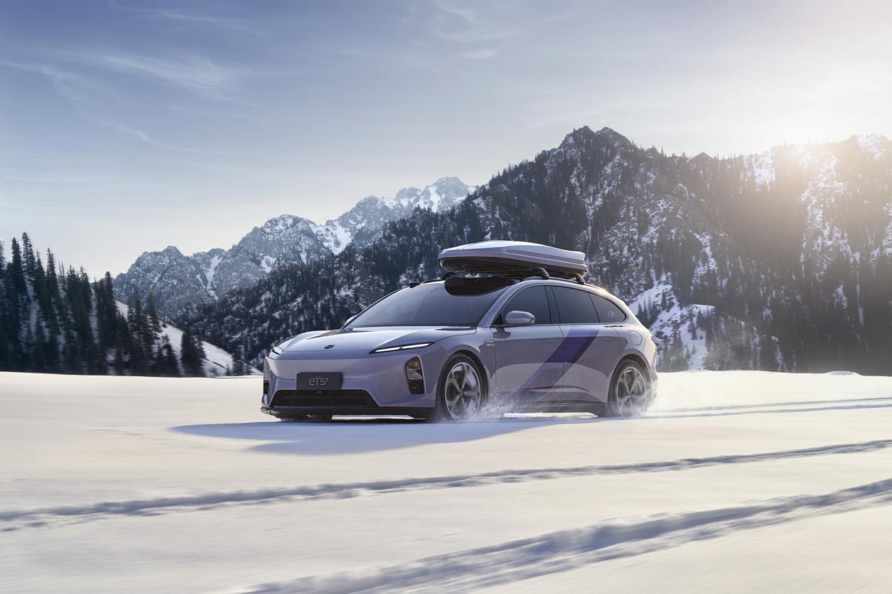 新ET5 与 ET5T 远空套装限定车型从新疆阿勒泰雪山日落黄昏后的“梦幻紫霞”中汲取设计灵感,以远空紫车色为基底,搭配专属主题拉花与三角窗贴纸,诠释属于冬日远方的向往感及浪漫氛围。两款新车均搭载 20 英寸花竞轮圈,并点缀远空紫特别版闪电气门芯帽,让专属感更显突出。新 ET5T 远空套装车型更配备了车顶行李架导轨、车顶箱横杆与远空紫车顶箱,进一步提升冬季出行的装载便利性。