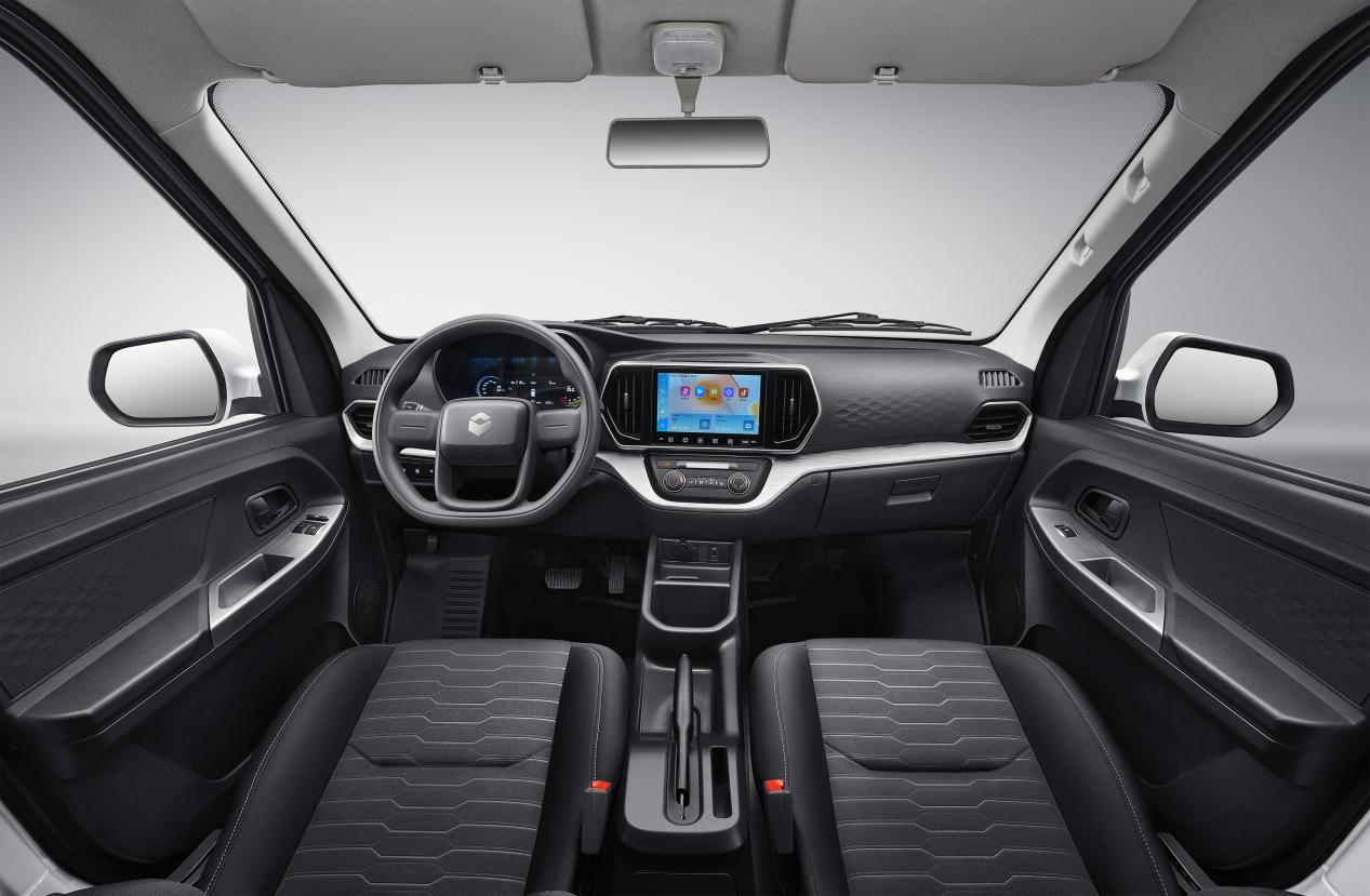 内饰采用乘用环抱式座舱,搭配三幅方向盘和怀挡设计,让操作更顺手,好看更好用。9寸大屏提升了整车的科技感,还具备手机互联和远程车控等功能,让用车更舒适、更便捷。