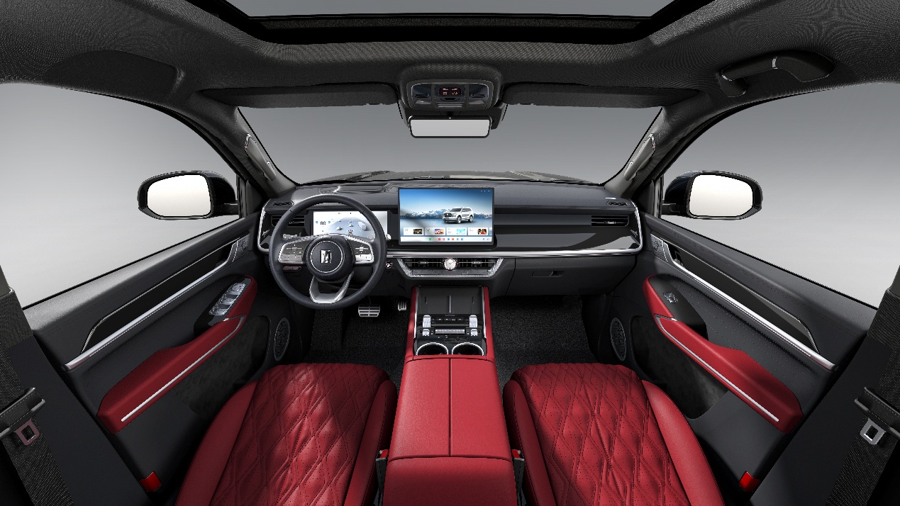 据悉,早在新车筹备之初,网上便有大量坦克粉丝借助AIGC以坦克500为原型描绘心中的Dream Car,并热切喊话官方为坦克500黑武士版搭配红色内饰;坦克品牌深度聆听用户心声,不仅将红色内饰方案正式纳入量产,更邀请网友共创命名,最终"骏马红"这一兼具东方意蕴与奋进精神的名字脱颖而出,被官方正式采纳。从视觉效果上看,新车内饰基于“黑甲赤韵”的设计巧思,采用定制深红色调的Nappa真皮座椅搭配菱格绗缝工艺,与全黑顶棚形成层次分明的视觉反差,在拉满豪华格调的同时,也为马年征程注入“红”运当头的美好寓意。