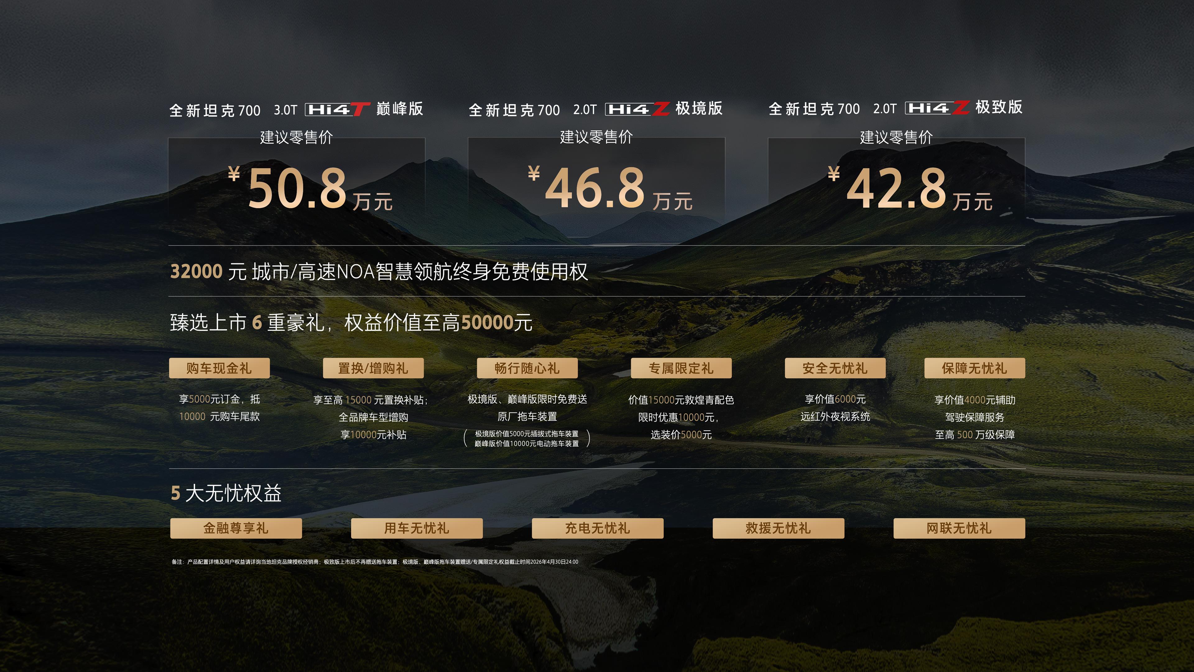 全新坦克700的上市,是坦克品牌技术、产品、用户运营、品牌高端化四维向上的关键里程碑,更是中国品牌冲击高端汽车市场的标志性事件。过去五年,坦克品牌不仅以品类创新开辟了中国越野的新时代,让越野从少数人的爱好成为一种大众生活方式,持续满足用户对更高阶出行体验的向往;更远销海外30多个国家和地区,以中国智造的硬实力,从国内的一枝独秀稳步走向全球舞台。
