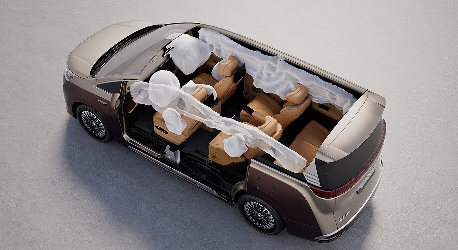 被动安全上,车辆按超五星标准打造「堡垒级安全结构」,整车75%采用高强度钢板,其中包含2000兆帕超高强度热成型钢,筑牢安全防线;全系标配9个安全气囊,其中3.2米同级最长侧气帘,贯穿前中后三排,全方位守护每一位家人。
