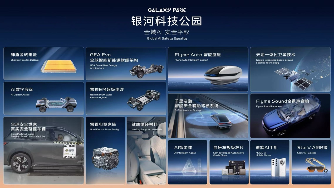 在近11年,吉利累计研发投入超2500亿元,不仅在新能源架构、三电和安全等核心技术领域取得了行业领先的成果,还在智能化领域持续探索和投入,从“大算力、大模型、大数据”,再到“天地一体”的出行生态,吉利已经全面构建了 AI 科技的新基座。随着《智能吉利2025战略》的不断落地,为打造吉利银河高价值新能源汽车提供了强大的技术支持,今年,吉利率先发布了行业首个智能汽车全域AI技术体系,并陆续将全域AI融入智驾域、动力域、底盘域,例如千里浩瀚智能安全辅助驾驶系统、AI云动力2.0、AI数字底盘等这些AI智能化的核心技术成果,已率先在吉利银河旗下产品上搭载应用。