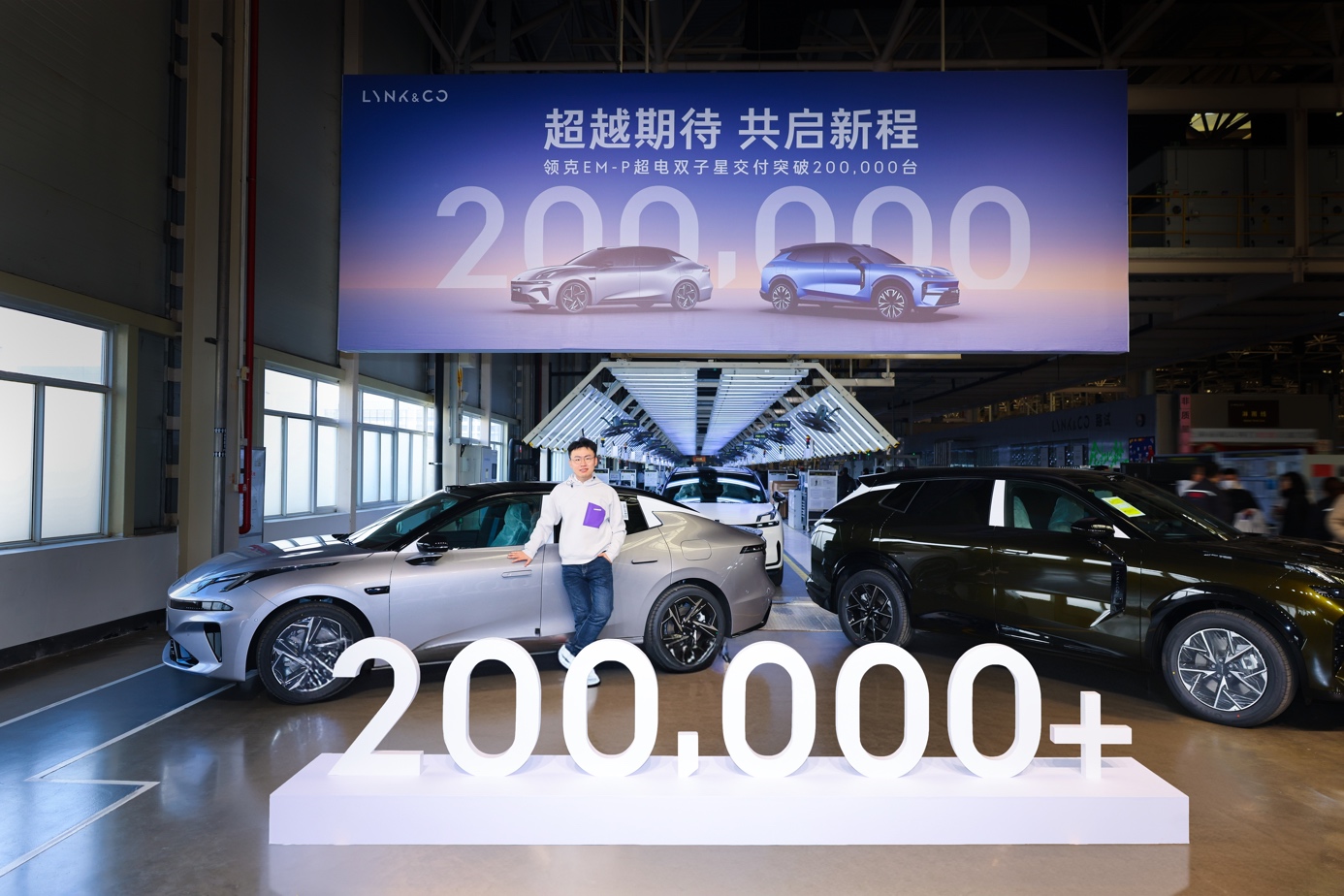 【中国汽车趋势网讯】12月17日,由领克07 EM-P与领克08 EM-P组成的超电双子星产品阵容,正式达成200,000台整车交付里程碑,实力演绎“领克速度”,更成为助力品牌累计用户突破165万的核心引擎之一。