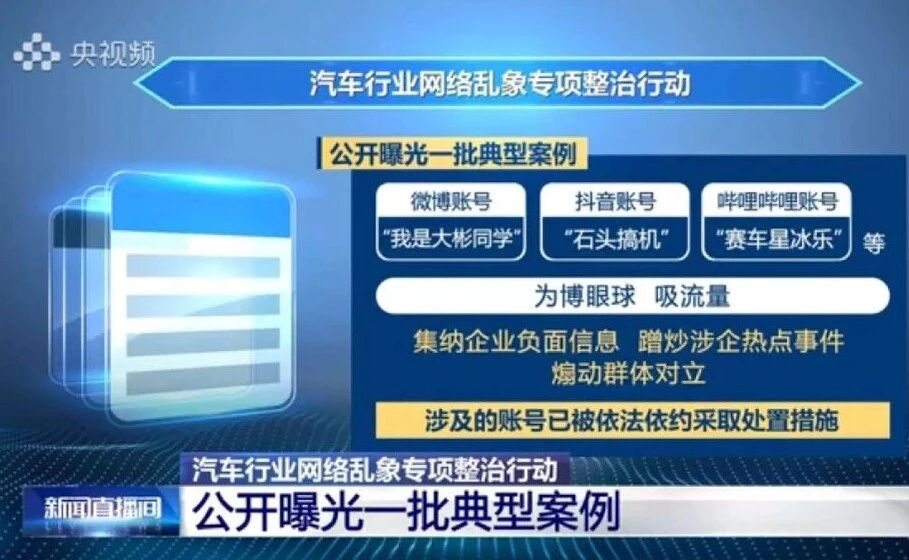 针对汽车行业网络乱象,今年9月,工业和信息化部、中央社会工作部、中央网信办、国家发展改革委、公安部、市场监管总局六部门联合印发《关于开展汽车行业网络乱象专项整治行动的通知》,在全国范围内开展为期3个月的汽车行业网络乱象专项整治行动。
