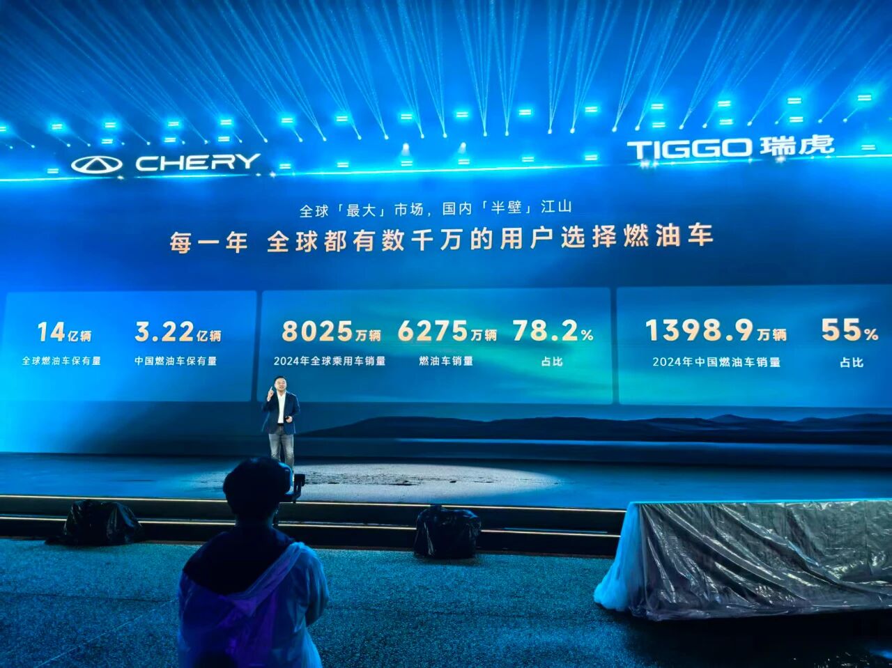 奇瑞汽车执行副总裁李学用致辞时说,目前,全球最大的市场,中国的半壁江山,仍然是燃油车市场。每一年,全球都有数千万的用户选择燃油车。有关统计显示,全球燃油车保有量14亿辆,中国燃油车保有量3.2亿辆。2024年全球乘用车销量为8025万辆,其中燃油车销量6275万辆,占比78.2%。2024年中国燃油车销量1398.9万辆,占比55%。2024年中国出口汽车中,约80%是燃油车。