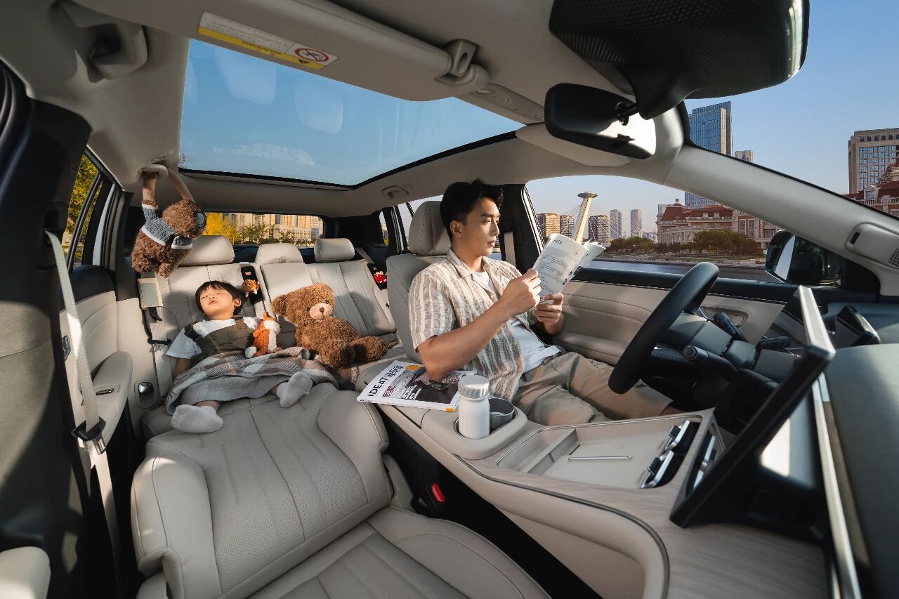 在家庭出行场景中,实用空间永远比噱头配置更重要。埃安i60摒弃行业热衷的“七座伪需求”,以近4米7的车身长度和2775mm轴距,打造出“5人8箱大衣柜”的实用格局,舱内有效使用长度超3米。后排同时容纳三位成年人仍不局促,后备箱可轻松收纳全家行李,配合灵活的储物设计,完美适配周末郊游、节日返乡等多元场景。